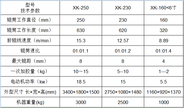 實(shí)驗(yàn)用開(kāi)煉機(jī)技術(shù)參數(shù):